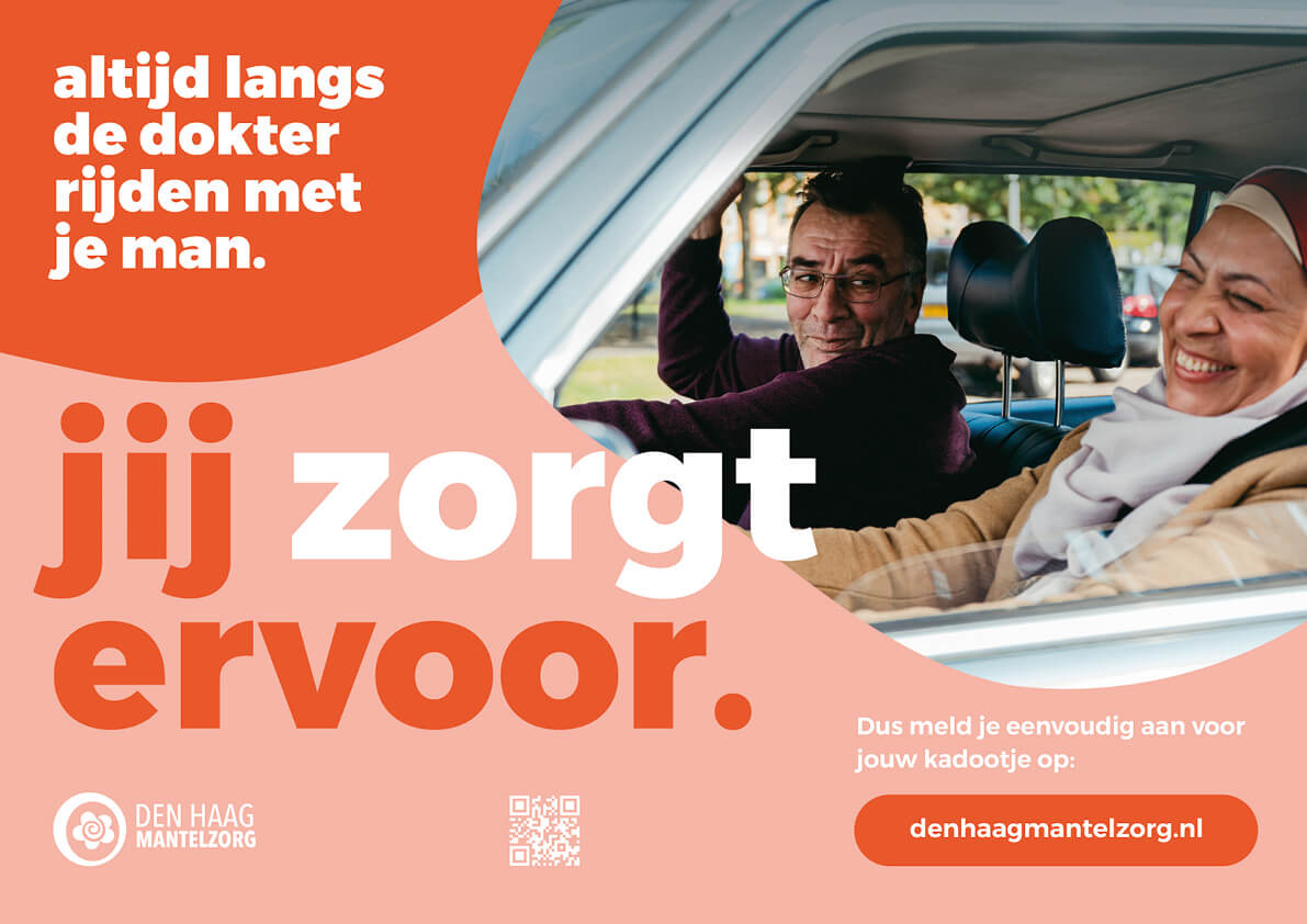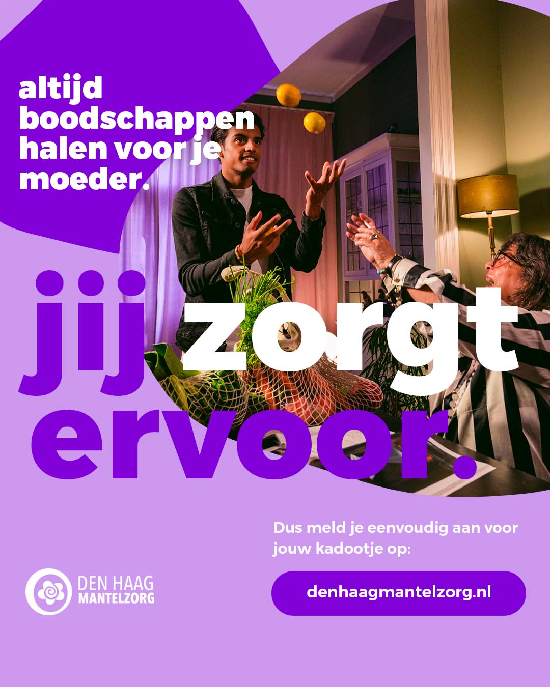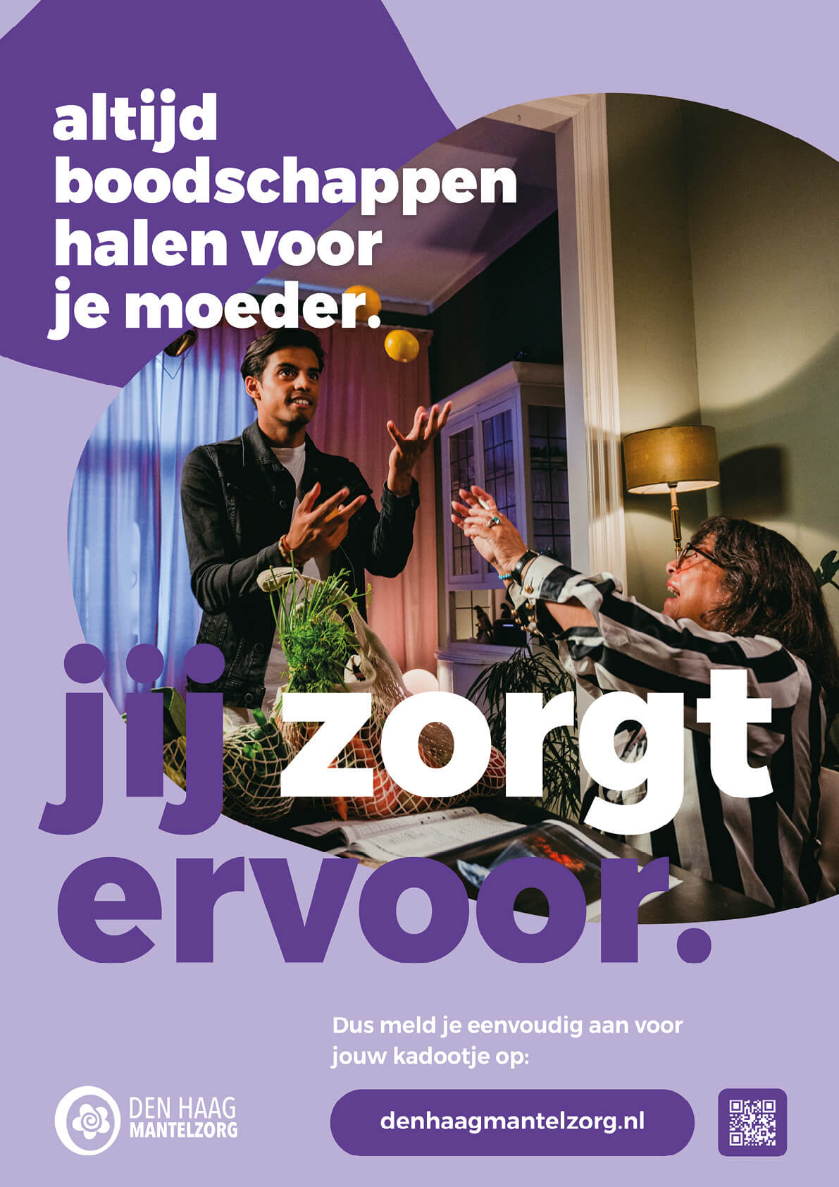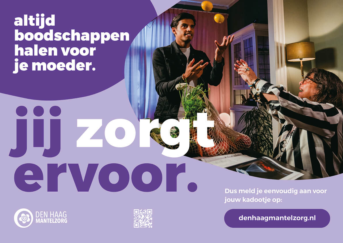 Om meer mantelzorgers te bereiken, lanceren we begin oktober 2021 een campagne. We starten met een bewustwordingsfase waarin we duidelijk maken wat iemand tot een mantelzorger maakt. Daarna volgt de activatiefase waarin we mantelzorgers oproepen zich aan te melden voor een kadootje via denhaagmantelzorg.nl