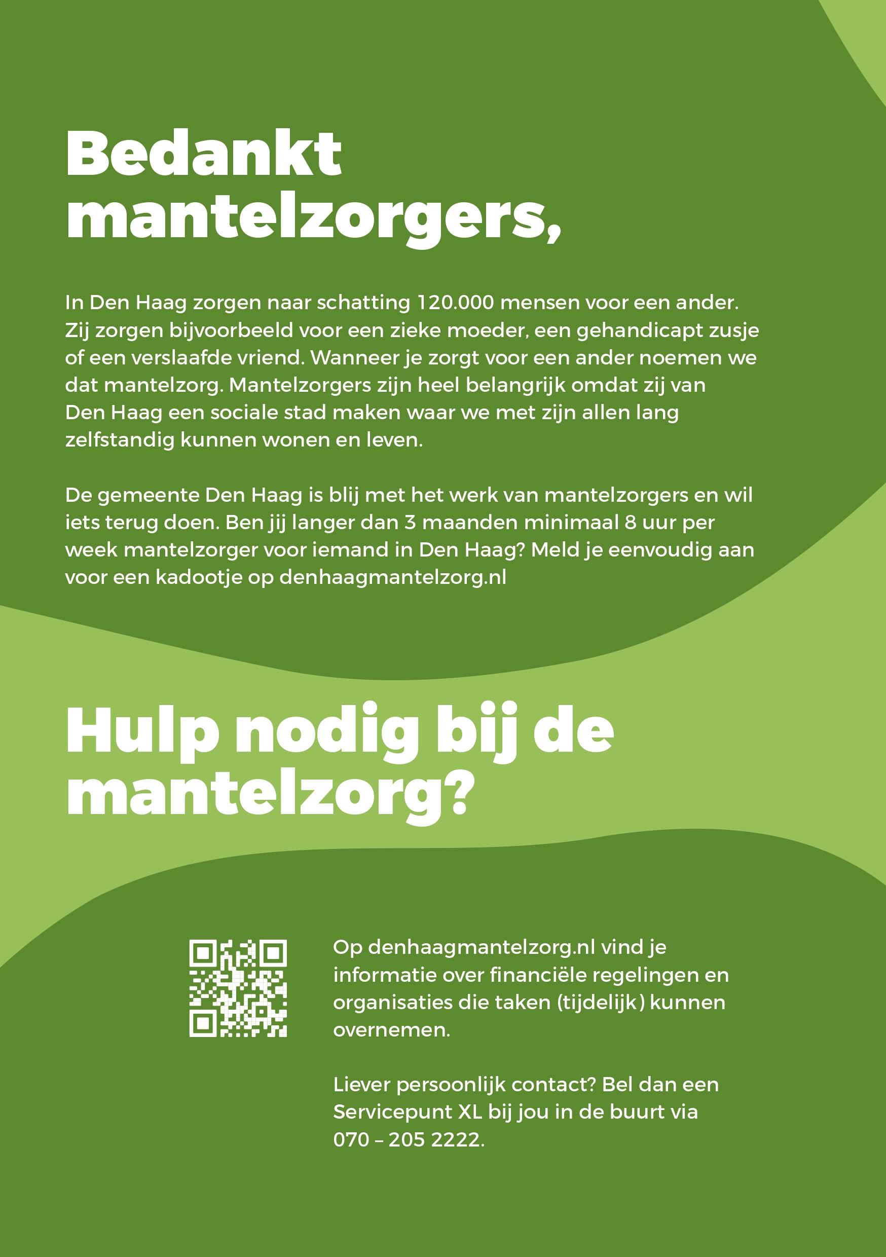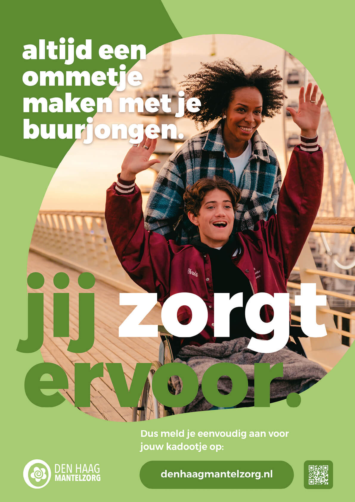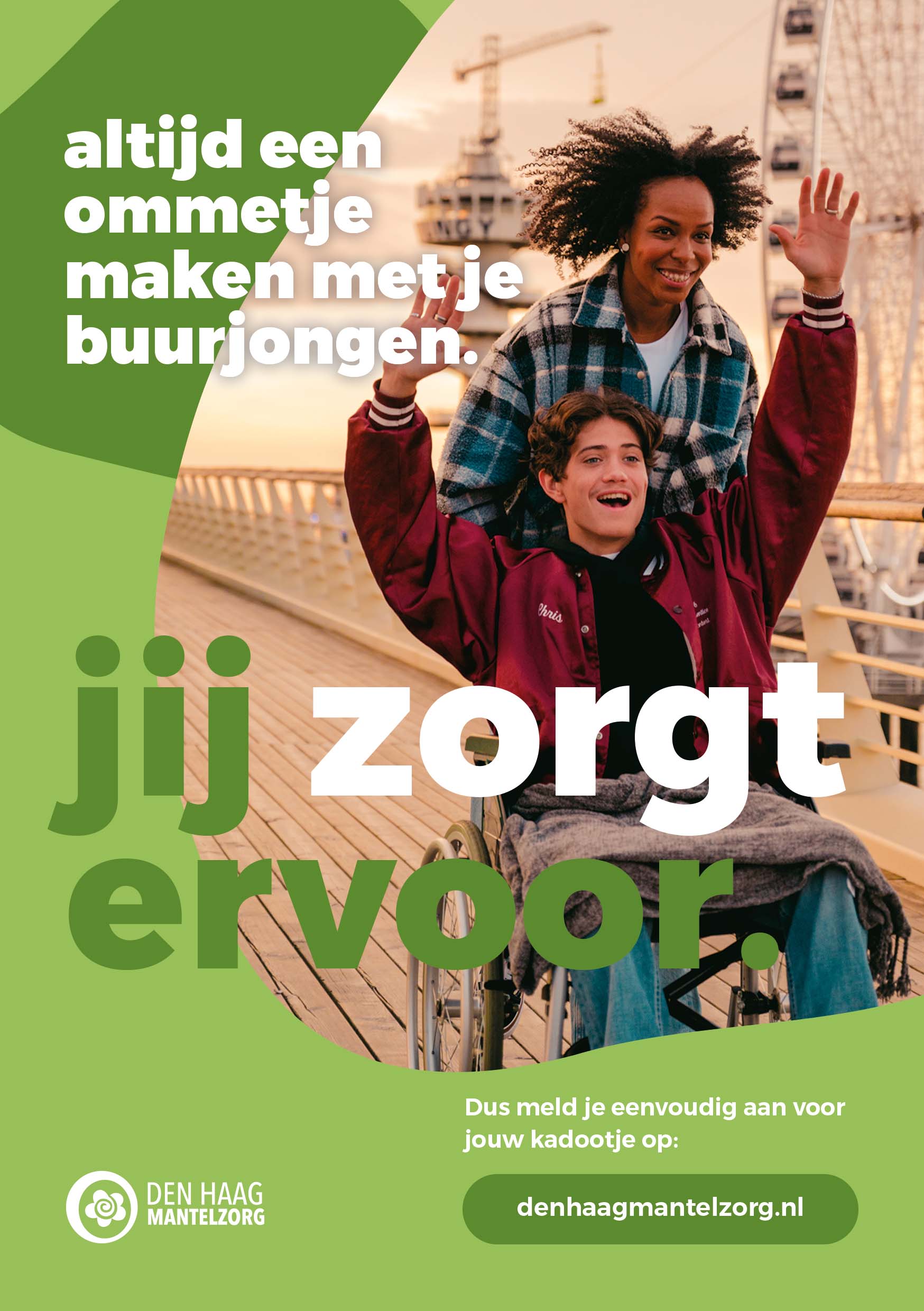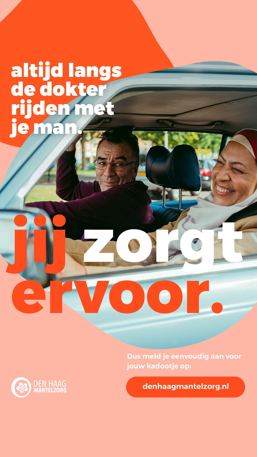 Om meer mantelzorgers te bereiken, lanceren we begin oktober 2021 een campagne. We starten met een bewustwordingsfase waarin we duidelijk maken wat iemand tot een mantelzorger maakt. Daarna volgt de activatiefase waarin we mantelzorgers oproepen zich aan te melden voor een kadootje via denhaagmantelzorg.nl